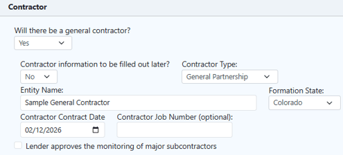 If you choose to enter the respective contractor data then follow along for the fields to complete: