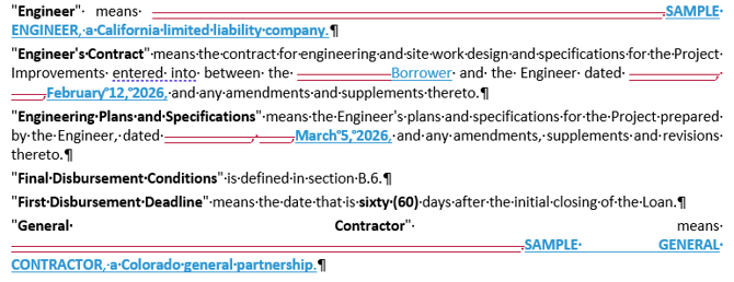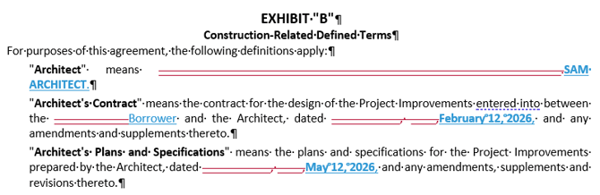 The contractor informations flow into the Exhibit B "Construction-Related Defined Terms" of the Loan Agreement: