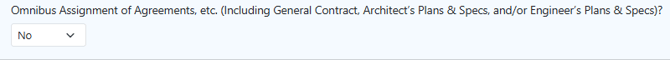 "Omnibus Assignment of Agreements, etc. (Including General Contract, Architect’s Plans & Specs, and/or Engineer’s Plans & Specs)?" turned off:
