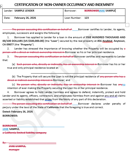 Business purpose and non-owner occupancy provisions for Non-InvestorDocs loan packages