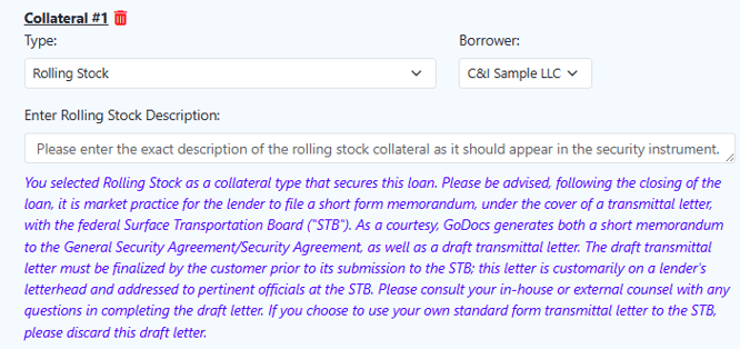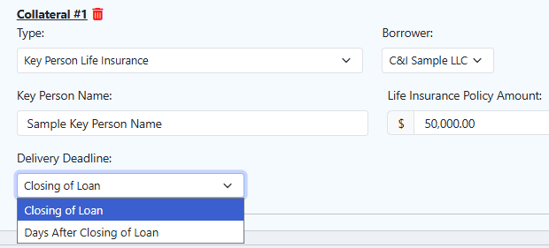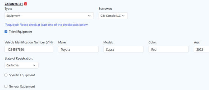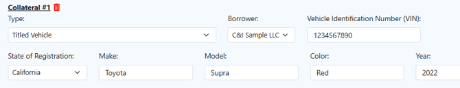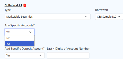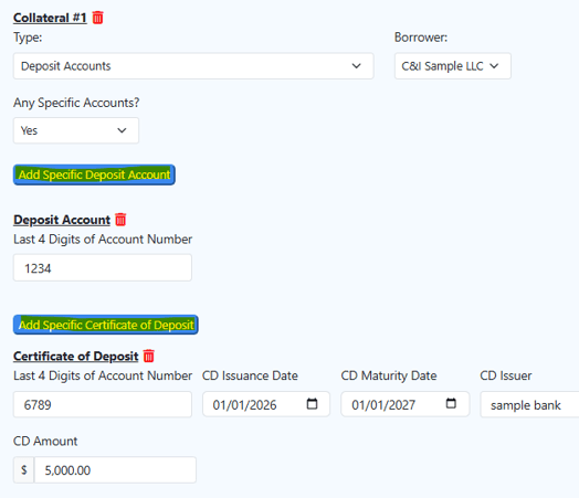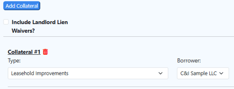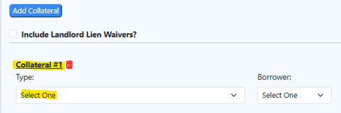 Under the Collateral Tab the customer is able to "Add Collateral":