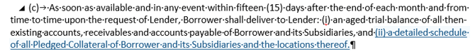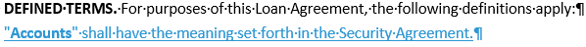 References in the Loan Agreement (Defined Terms, Section C.4.(c), D.9.(a)):