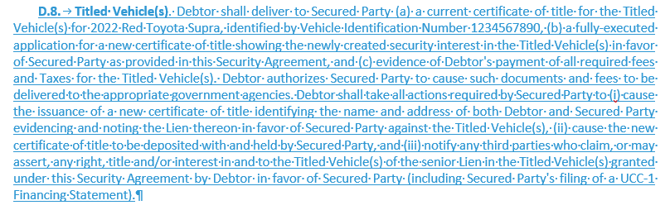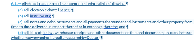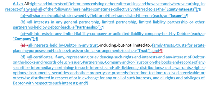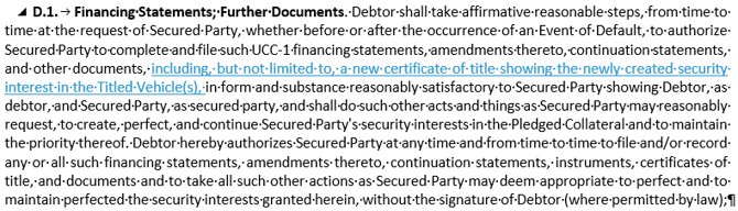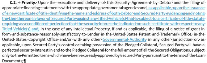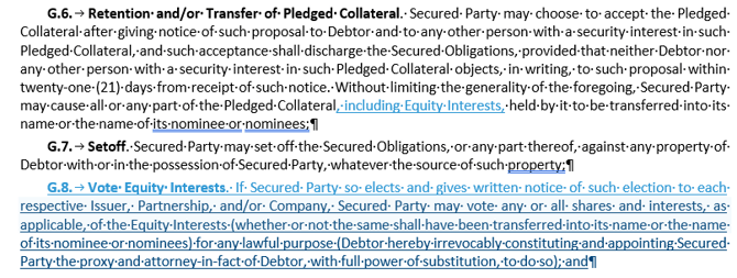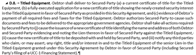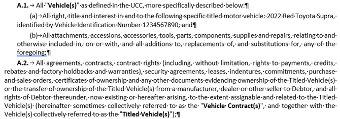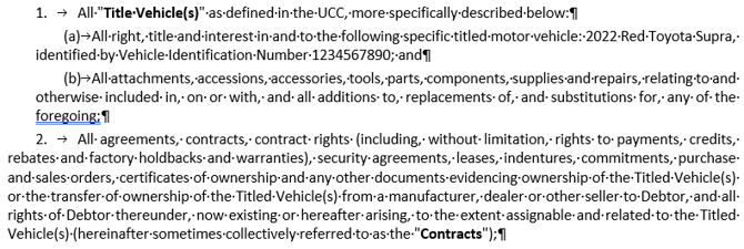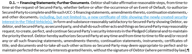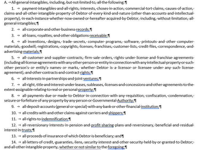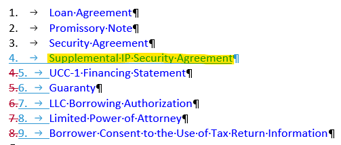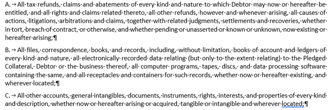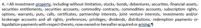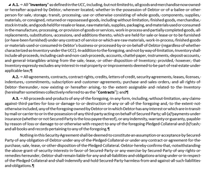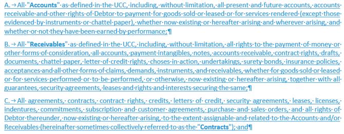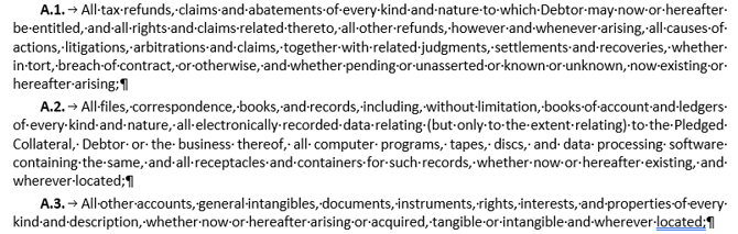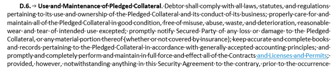 : ownership interests, money and income tied to those interests, business assets (now and in the future), Insurance and legal proceeds and books and records.That means if the loan isn’t repaid as agreed, the lender has the right to take and sell these items to get repaid.