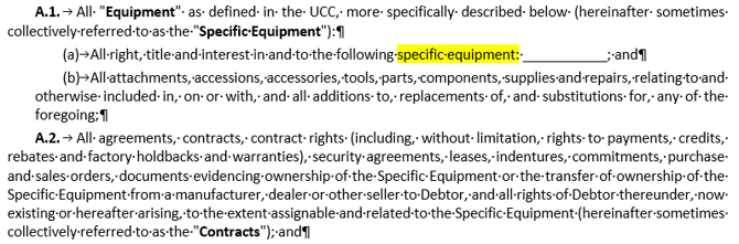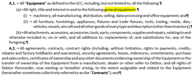 References in the Security Agreement (Section B) & Exhibit A of the UCC-1: