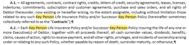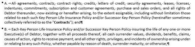 Key Person Life Insurance is collateral that is intangible and event-driven (death) and includes much more than just death benefits: the policy itself, the death proceeds, cash surrender value, dividends, claims and contract rights specifically tied to an identified executive (“Key Person”) whose continued involvement is critical to the business.