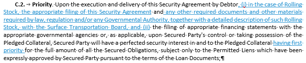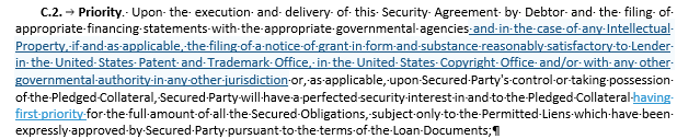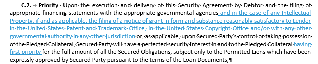 References in the Security Agreement (Section A, C, D, E & Schedule 1):