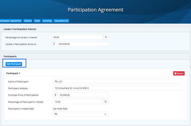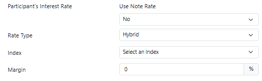 - The Participant’s Interest Rate automatically mirrors the Note Interest Rate from the Loan tab.