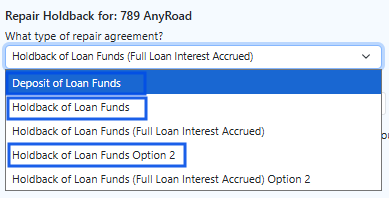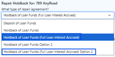 For loans that include a holdback of loan funds, GoDocs applies the appropriate interest calculation logic:
