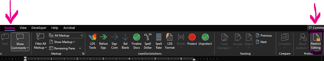 Loan documents that are reviewed and uploaded by outside counsel often times are protected and in "View only". As such they will require a password entry in order to "unprotect" them so you can edit and modity if necessary.