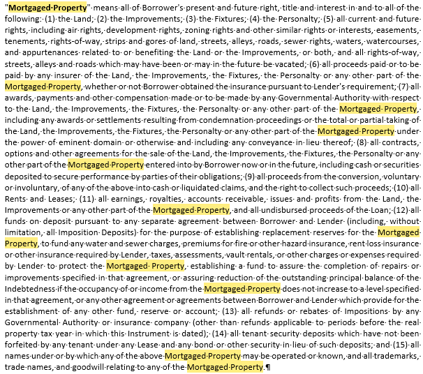 GoDocs loan documents clearly identify the Real Estate Collateral Location in the defined terms section of the security instrument: