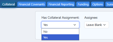Under the Collateral Tab is the selection for "Has Collateral Assignment:"