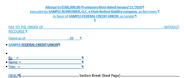 Instead, they do one thing:They give the lender the ability to assign or transfer its interest in the loan and related collateral to another party in the future, if the lender ever sells, participates, or pledges the loan. That is why an extra page/documents (e.g Allonge, Assignment of Collateral Docs, etc.) appear after the Note.