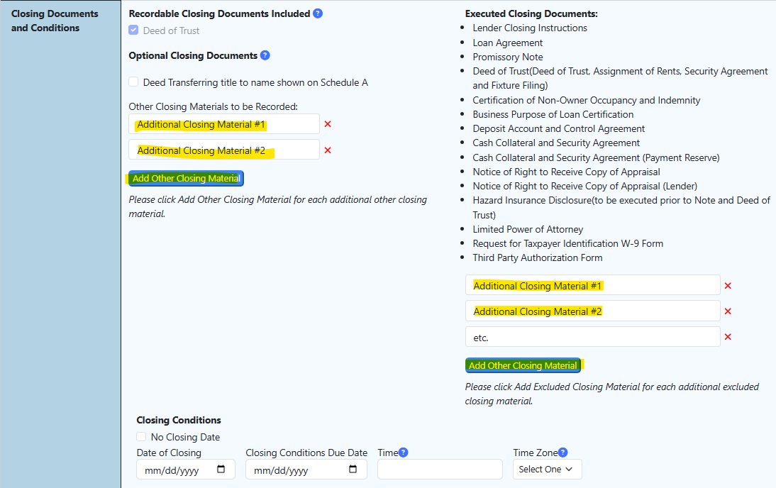 GoDocs has the option to include Lender Closing Instructions within your loan document package.