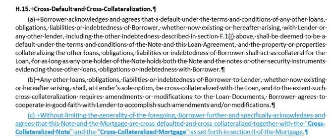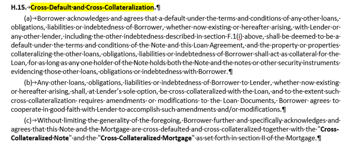 Borrower Affiliate Language, Cross-Default and Cross-Collateralization