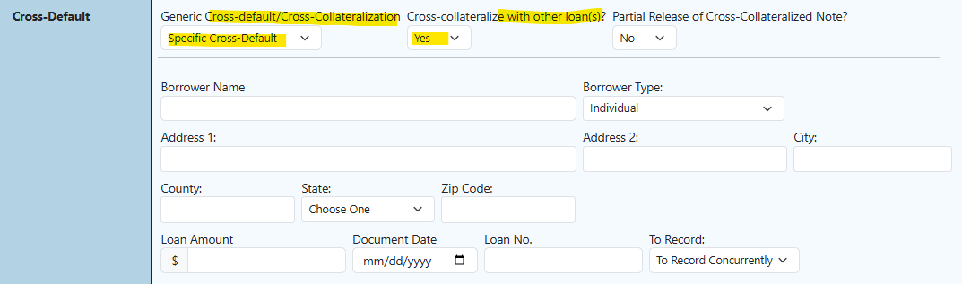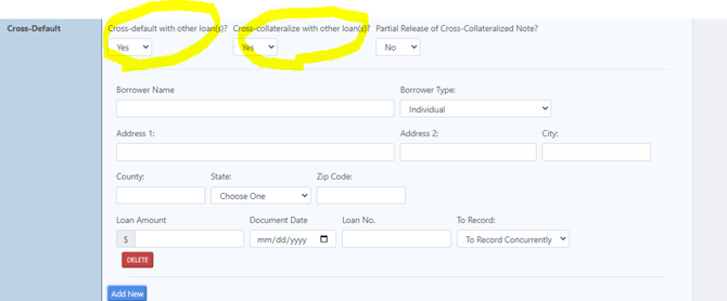 - To best protect its interests, Lender should still utilize GoDoc's UI option to specifically identify any existing collateral being cross-collateralized/cross-defaulted at the time of closing. This will separately trigger any necessary references to cross-collateralized loans.