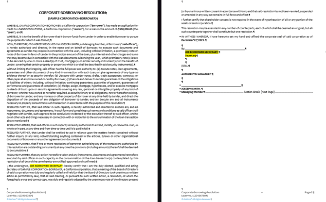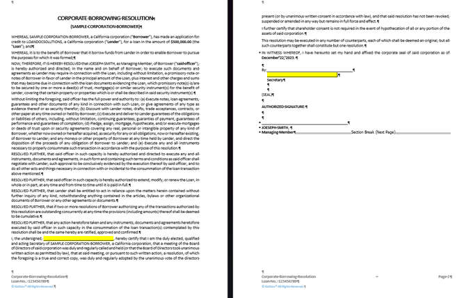 It will flow into the Corporate Guarantor's Borrowing Resolution as below: